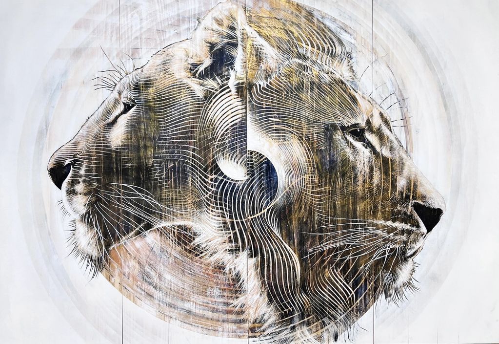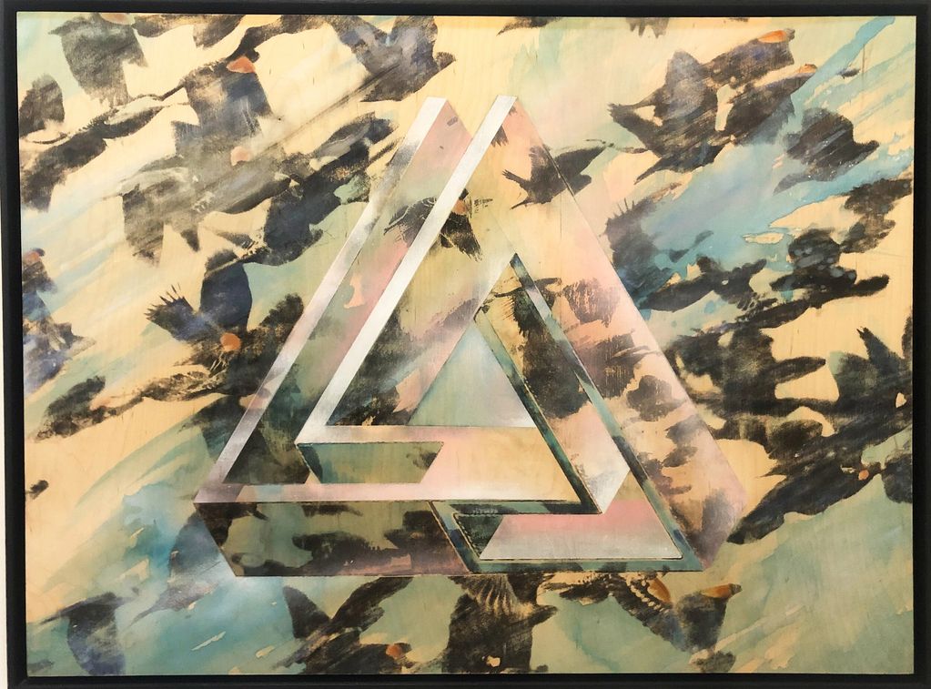 My process of hand transferring carbon prints to pre painted wood is still my main go- to. The print collage becomes a layer of the composition as I paint towards a desired aesthetic. I aim to make love and spirit visible in my work.